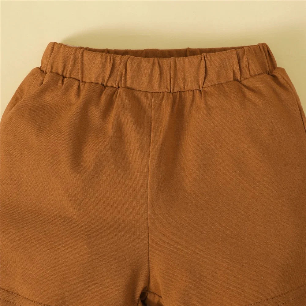 Make summer dressing fun and easy with the 2PCS Baby Boy Dinosaur Summer Outfit, a sporty and charming set designed for active little explorers. Featuring a white short sleeve top with a cartoon dinosaur print and comfy brown shorts, this outfit brings playful style to warm-weather adventures.