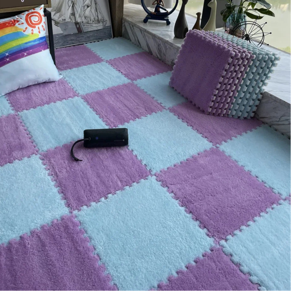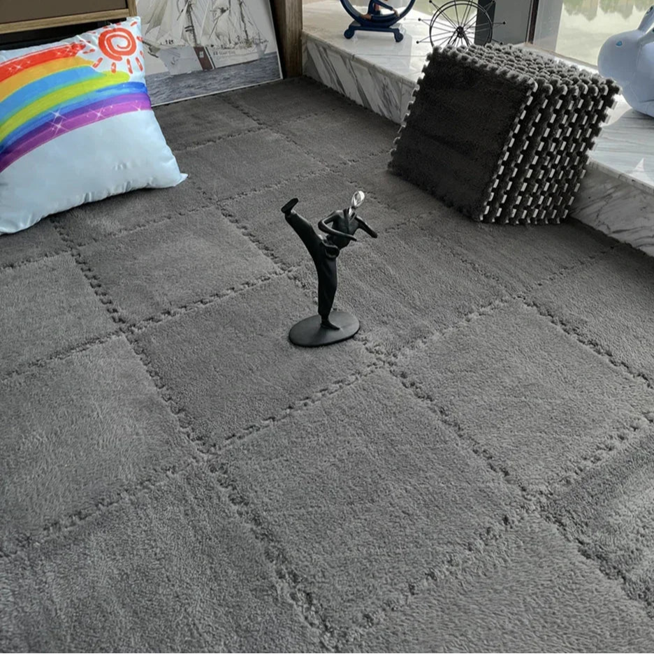 Create a cosy, cushioned play space with the 30x30CM Soft Plush Children Kids Rug Play Mat. Designed for comfort and practicality, these interlocking floor tiles offer a soft velvet surface and thick EVA foam backing—perfect for playtime or lounging.