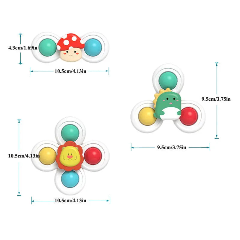 - Use Cases: Baby bath toys, window spinner toys, travel toys for toddlers, high chair distraction toys, suction cup sensory play