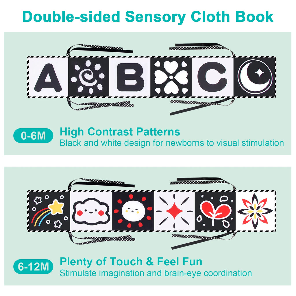 Baby Sensory Cloth Book – High Contrast Black & White Crib Toy for Newborns