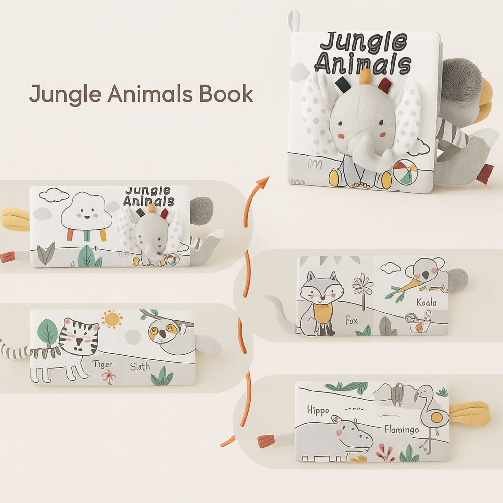 Support early development through play with the Soft Baby Cloth Book, a high-contrast, sensory-rich toy designed to stimulate sight, sound, and touch in babies from birth to one year. Featuring textured animal limbs, rustling pages, and built-in rattles, this plush book enhances cognitive and language skills while keeping little hands engaged. Safe, durable, and pram-friendly, it’s ideal for everyday play, tummy time, or on-the-go learning.